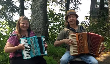 Daddy Squeeze and Elizabeth play a fun mix of lively tunes on accordion, percussion and vocals. You’ll hear European and American Folk, Country, Cajun, Jug Band Blues, Fats Domino, Hank Williams, Beatles and more.
